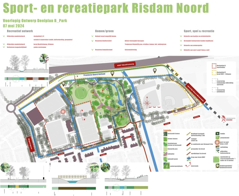 Met de veranderingen op het sportpark zelf kwam er ook ruimte vrij om het park te vergroten, te vergroenen en recreatief te versterken. Er wordt ruimte gecreëerd voor een natuurspeelplaats. Het recreatieve netwerk van wandel- en fietspaden wordt verbeterd. Het hoofdpad wordt geflankeerd door een bollenlint.